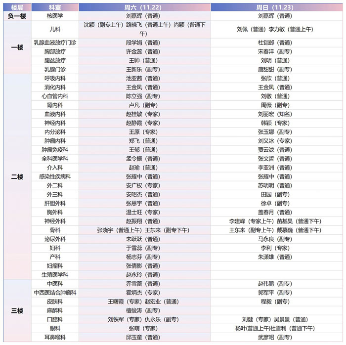 注:具体以实际出诊为准。