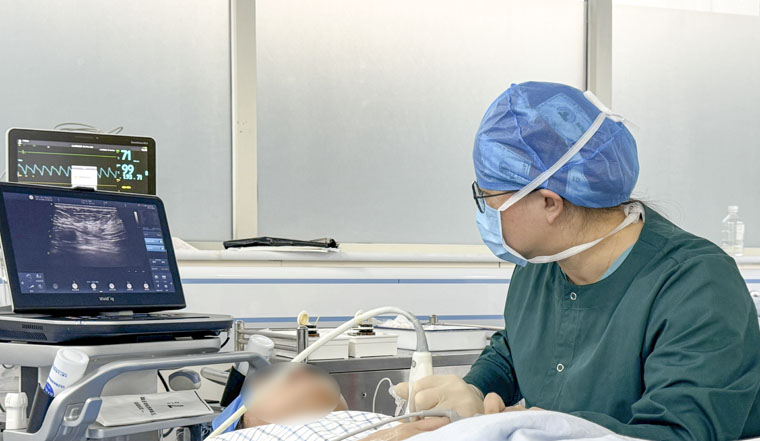 以往乳腺肿物日间手术多在局部麻醉下由外科医生独立完成,常面临镇痛不全、患者术中紧张焦虑以及外科医生难以兼顾高危患者生命体征监测等挑战。今年年初,麻醉科主动介入,针对每位患者制定个体化麻醉方案。一是精准镇痛,通过超声引导下神经阻滞,针对肿物位置进行精准麻醉,使患者术中疼痛感显著减轻,基本实现无痛手术;二是舒适镇静,对于紧张焦虑的患者,提供安全的静脉镇静服务,让患者在“睡眠”中舒适完成手术。